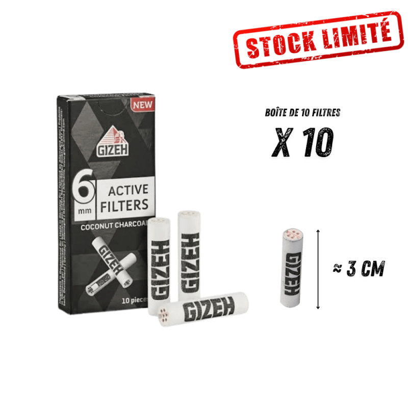 Découvrez les filtres Gizeh au charbon actif de coco 6mm, conçus pour optimiser la filtration de vos mélanges CBD. Ces filtres innovants exploitent une technologie à trois chambres avec du charbon actif naturel de noix de coco, garantissant une rétention maximale des impuretés. Format compact 6x25mm réutilisable et écoresponsable, vendus par boîte de 10 filtres. Solution premium pour une expérience de qualité.