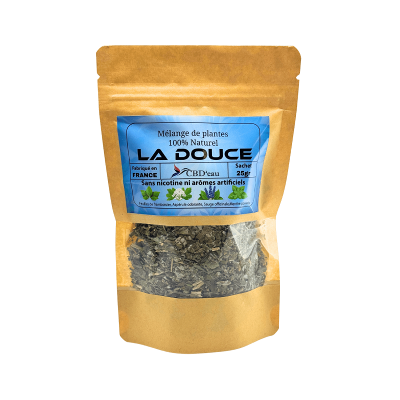 Découvrez le mélange de plantes LA DOUCE, une composition 100% naturelle et bio alliant feuilles de framboisier, aspérule odorante, sauge officinale et menthe poivrée. Ce blend français offre un goût léger, équilibré et rafraîchissant, sans nicotine ni arômes artificiels. Parfait pour une expérience gustative apaisante aux propriétés relaxantes et digestives naturelles.