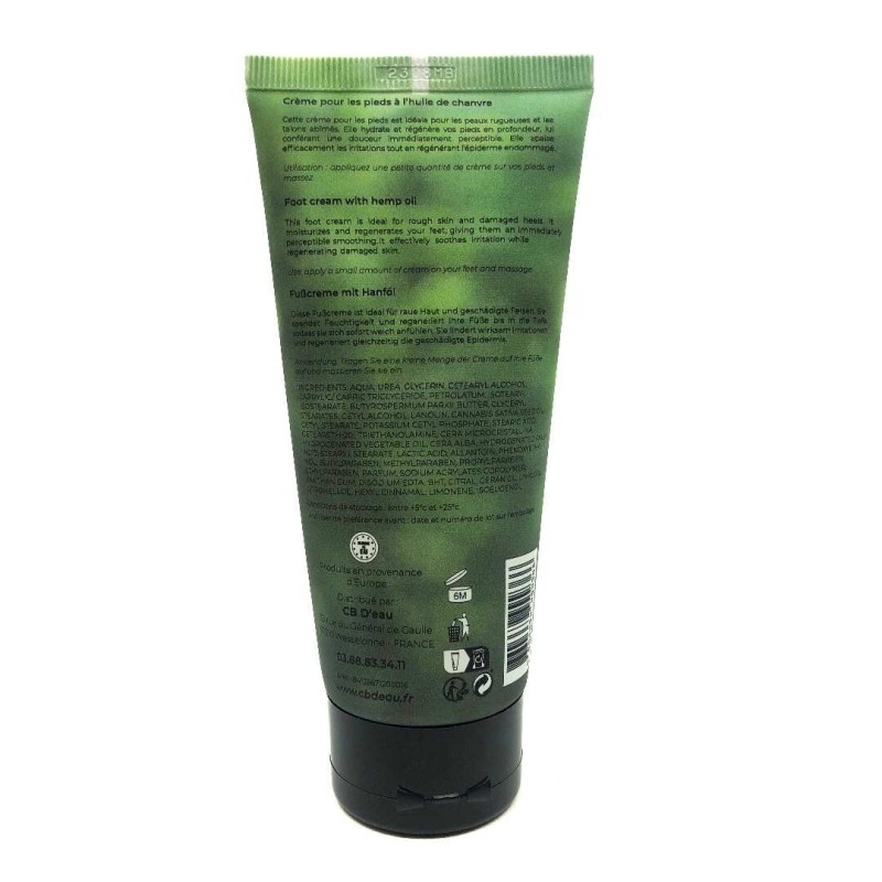 Elle contient de l'huile de chanvre biologique cultivée en Europe, du beurre de karité et de l'urée dans une formule 100% naturelle.