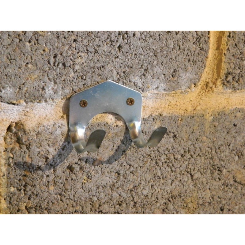 Ces crochets doubles conviennent parfaitement pour outils de jardinage (râteaux, binettes, pelles), matériel de bricolage, équipements sportifs et objets divers du garage ou de la remise.