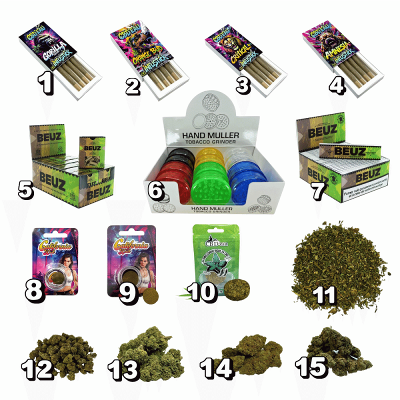 Les accessoires professionnels complètent parfaitement cette offre avec des filtres en carton pré-roulés Beuz, grinders transparents et carnets de feuilles. Cette combinaison permet à vos clients de disposer immédiatement de tout le nécessaire pour profiter pleinement de leurs achats, renforçant ainsi leur satisfaction et fidélisation.