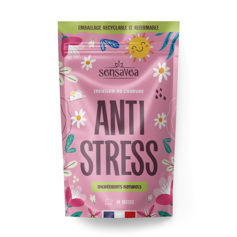 Découvrez la tisane CBD bio anti stress Sensavea, une infusion chanvre relaxante exceptionnelle pour dire bye-bye au stress naturellement. Ce mélange unique de plantes biologiques du Luxembourg contient 30% de chanvre, accompagné de tilleul, mélisse, camomille et verveine. Sans théine et issue d'agriculture biologique, cette infusion de 25g vous offre environ 14 tasses apaisantes pour des moments de détente privilégiés.