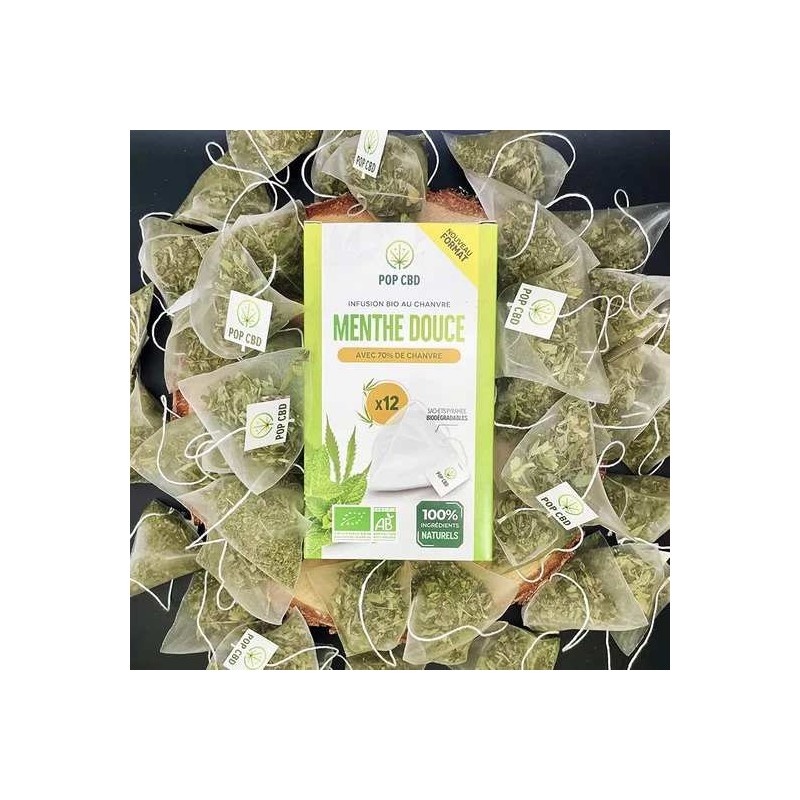 Savourez la fraîcheur authentique de cette tisane CBD bio menthe douce fabriquée au Luxembourg par POP CBD. Cette infusion artisanale combine harmonieusement 70% de chanvre bio avec de la menthe verte et poivrée pour une expérience gustative rafraîchissante et relaxante. Conditionnée en 12 sachets pyramide biodégradables de 22g, elle offre des propriétés antispasmodiques naturelles reconnues depuis des siècles.