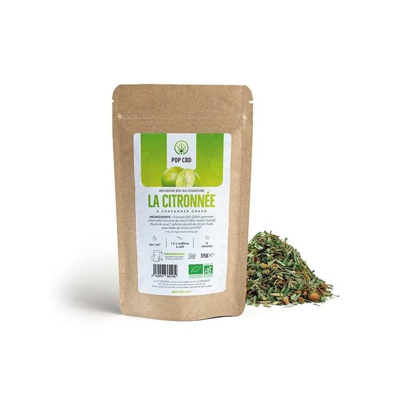 Découvrez La Citronnée, l'infusion CBD bio de Pop CBD qui porte parfaitement son nom ! Cette tisane chanvre premium combine écorces de citron et huile essentielle de citron vert pour une expérience gustative exceptionnelle. Fabriquée au Luxembourg selon les standards de l'agriculture biologique, cette tisane sans théine de 35g vous offre environ 18 tasses d'un moment de détente acidulé et rafraîchissant à savourer à tout moment de la journée.