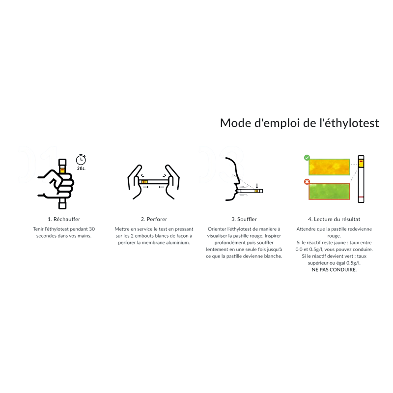| Seuil de détection | 0.25mg/l d'air expiré / 0.5g/l de sang |