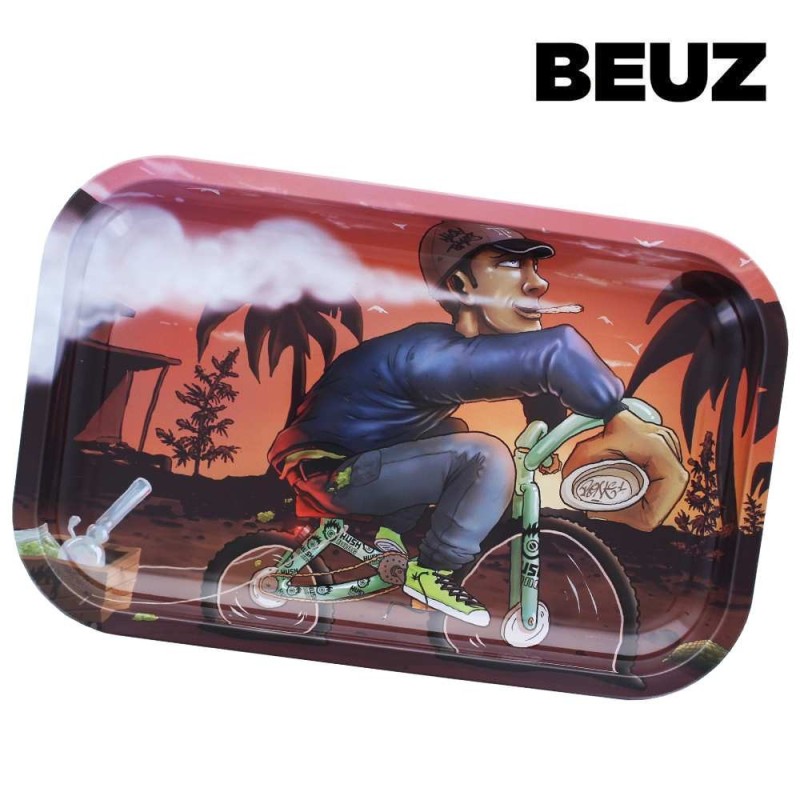 Le plateau à rouler Beuz Bike Print se distingue par son design original représentant un cycliste au coucher du soleil. Fabriqué en métal robuste, ce plateau de 27,5x17,5cm offre une surface stable et pratique pour préparer vos mélanges CBD. Ses rebords surélevés empêchent tout éparpillement du contenu. Alliant fonctionnalité et esthétisme, cet accessoire indispensable transforme vos préparations en moment agréable tout en décorant votre espace.