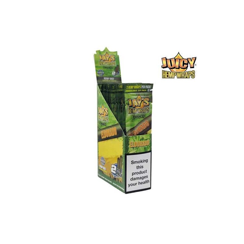 Les blunts de chanvre Eldorado de Juicy Jay's offrent une expérience premium 100% naturelle sans tabac ni nicotine. Chaque paquet contient 2 wraps slim (109 x 44 mm) au goût authentique d'ananas tropical, fabriqués aux Philippines avec un chanvre de qualité supérieure. Cette boîte comprend 25 paquets pour un total de 50 blunts, avec système de fermeture hermétique et tasseur inclus pour une conservation optimale.