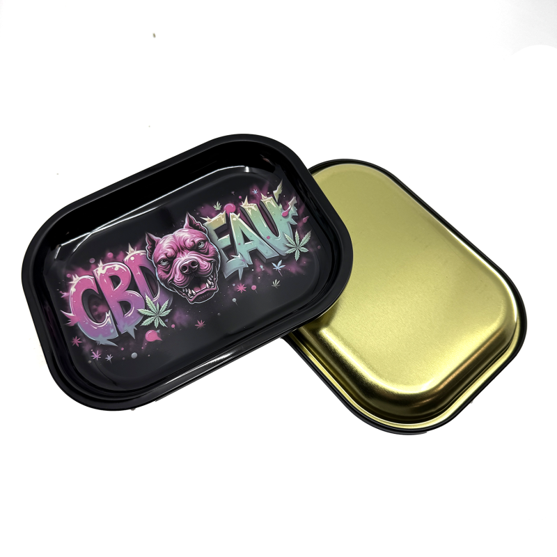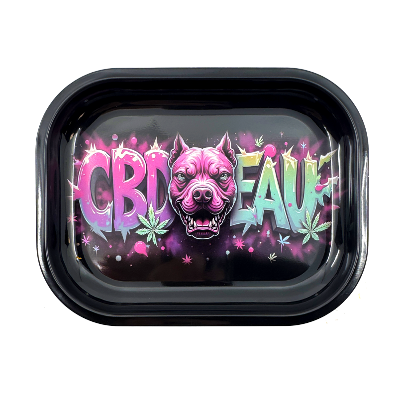 Découvrez le plateau à rouler CBD'EAU Dog au design street art unique qui révolutionne vos sessions. Ce plateau en métal robuste de 18x14cm arbore une illustration canine saisissante en tons roses et verts néon sur fond noir. Parfait pour les amateurs de CBD recherchant un accessoire fumeur original et pratique avec rebords surélevés facilitant la préparation de vos mélanges d'herbes préférés.