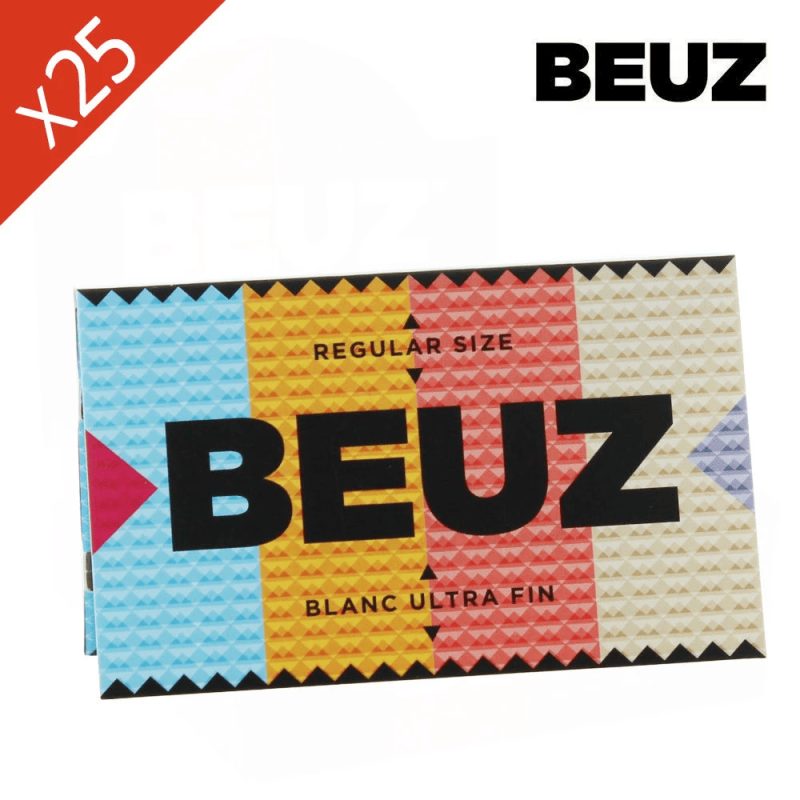 Découvrez notre boîte de 25 carnets de feuilles à rouler BEUZ blanches Regular, spécialement conçue pour les amateurs de CBD exigeants. Chaque carnet contient 120 feuilles en papier non blanchi de qualité premium, garantissant une combustion régulière et un goût authentique préservé. Cette offre groupée représente la solution économique idéale pour les utilisateurs réguliers et les professionnels du secteur, alliant qualité supérieure et prix attractifs pour une expérience optimale.