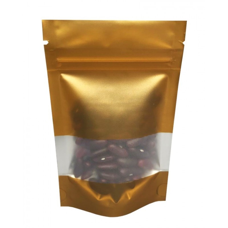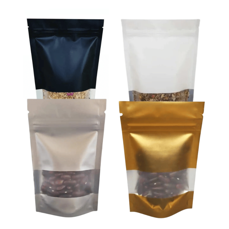 Ces pochettes aluminium avec fenêtre transparente offrent une solution d'emballage professionnelle pour vos produits. Le lot de 100 pochettes dispose d'une fermeture zip sécurisée et d'une fenêtre au dos permettant la visibilité du contenu. Fabriquées en aluminium mat de qualité, elles sont proposées en quatre coloris élégants : blanc, noir, argent et or pour s'adapter parfaitement à votre image de marque et répondre à tous vos besoins de conditionnement.